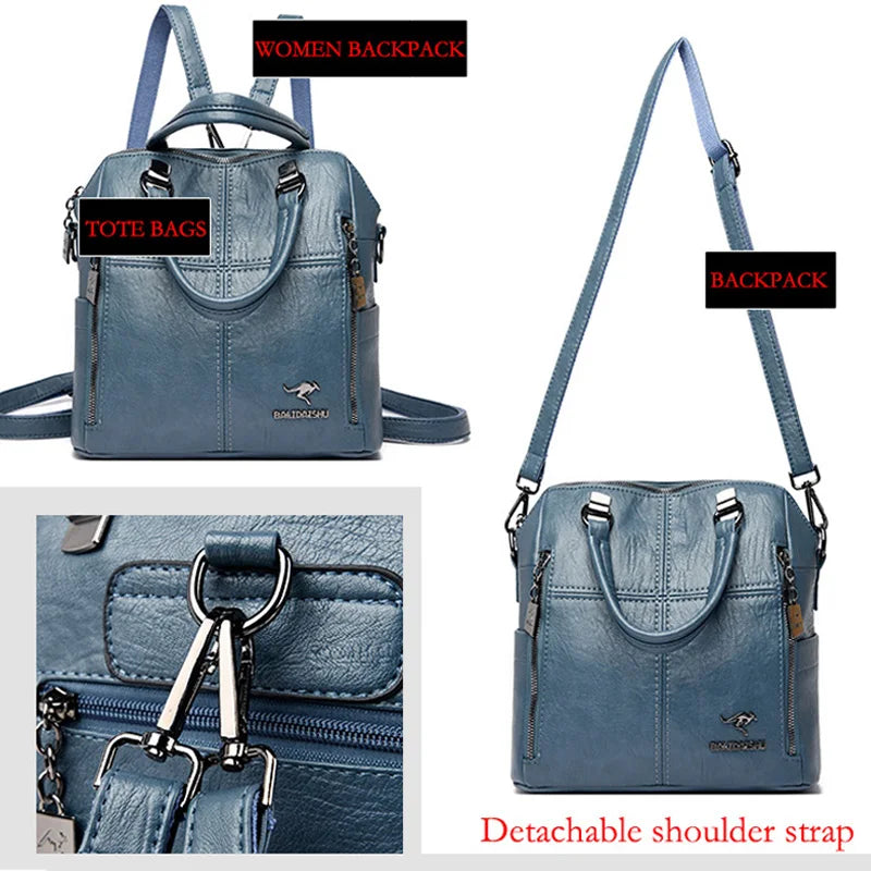 2023 New High Quality Leather Backpack Women Shoulder Bags Multifunction Travel Backpack School Bags for Girls Bagpack Mochila