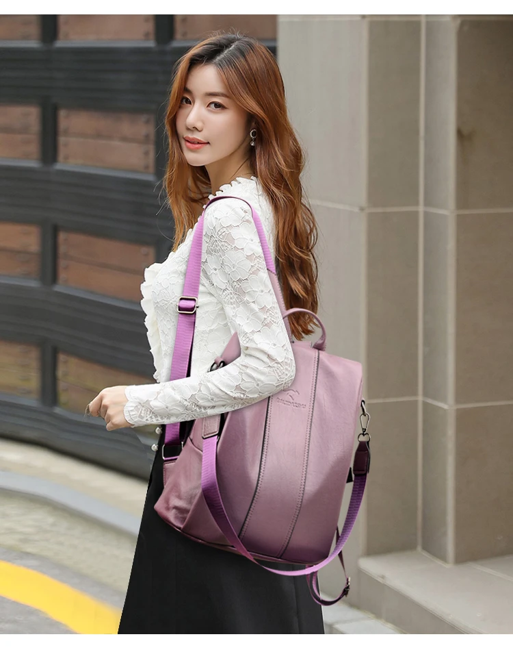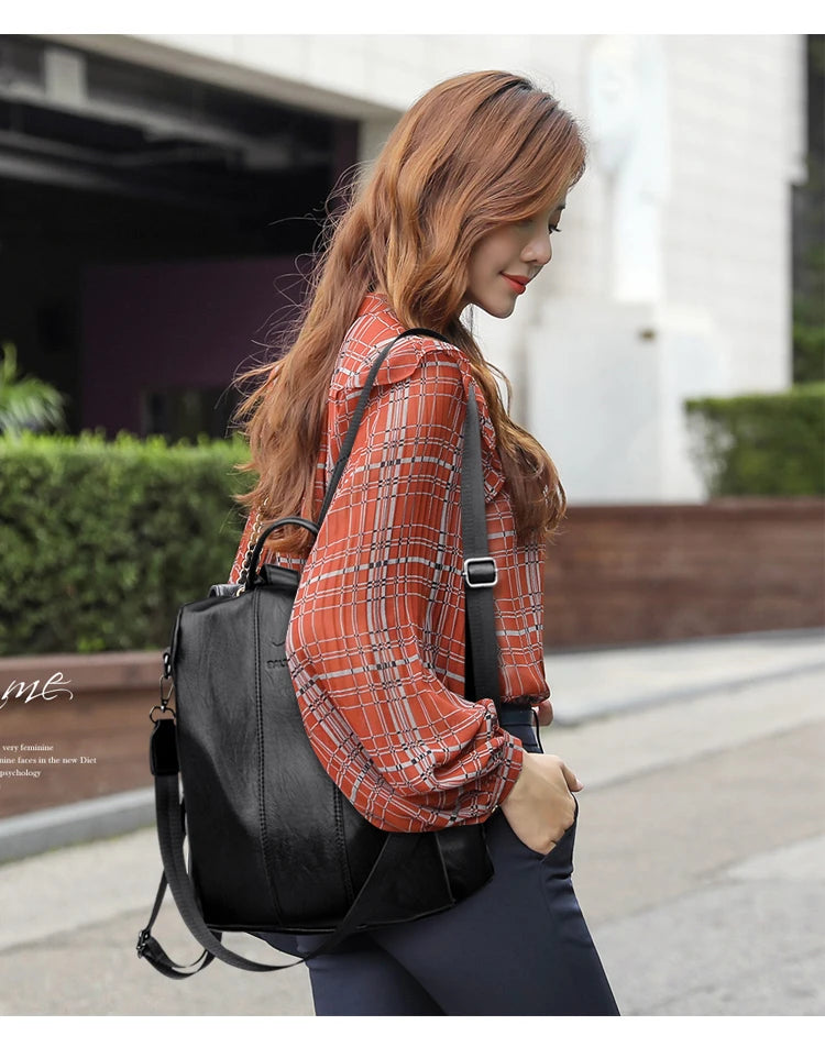 Anti-theft leather backpack women vintage shoulder bag ladies high capacity travel backpack school bags girls mochila feminina
