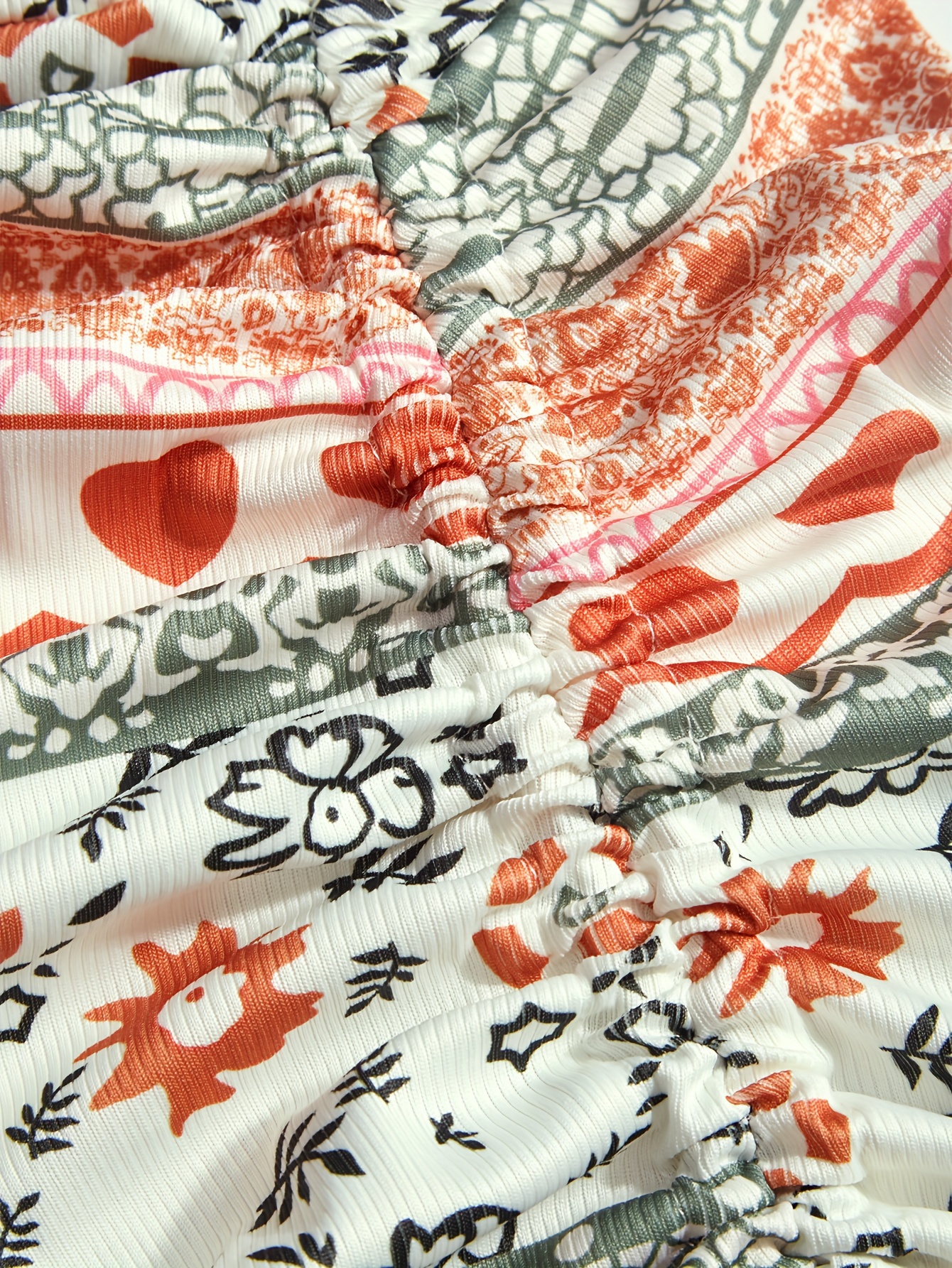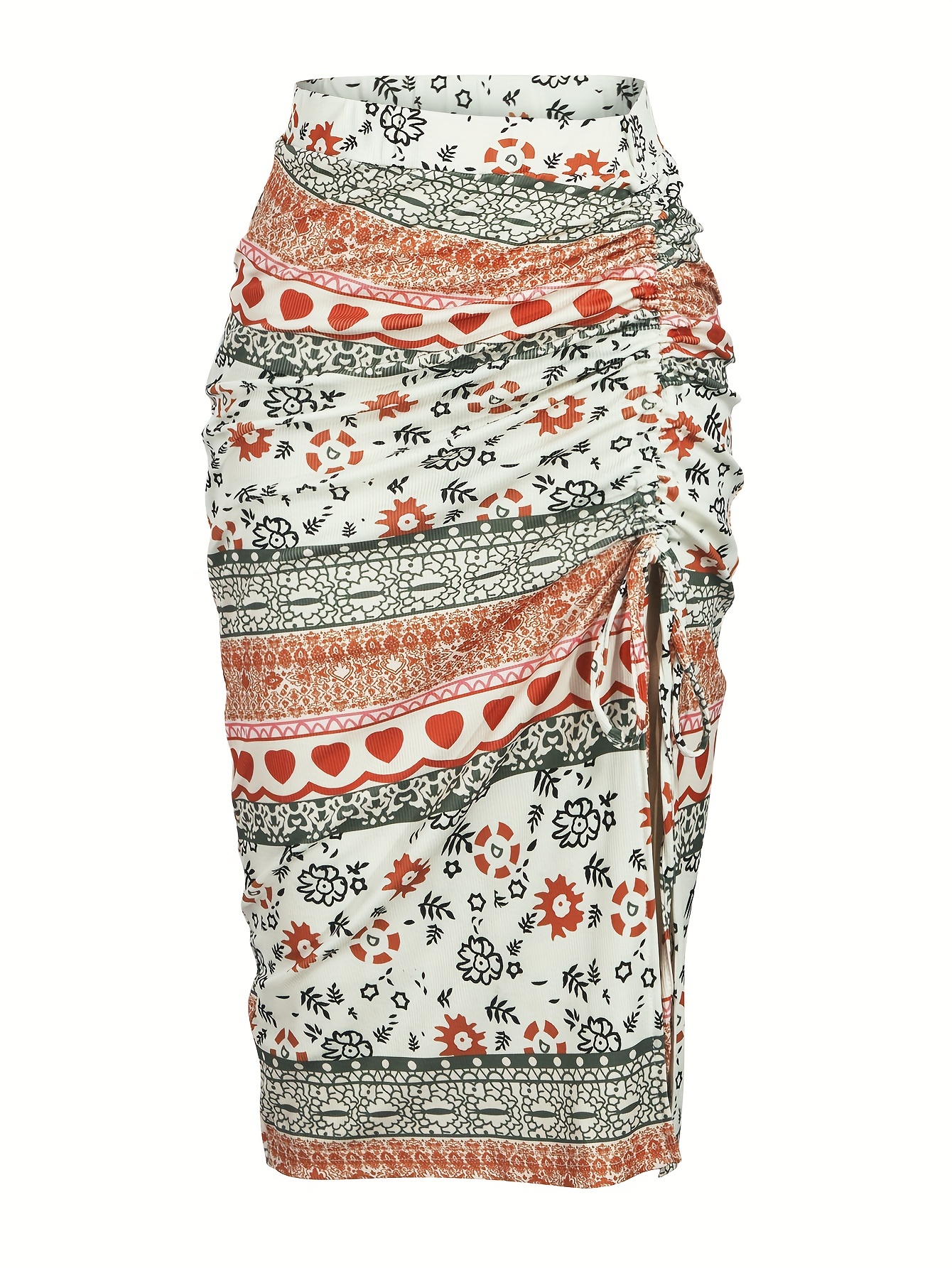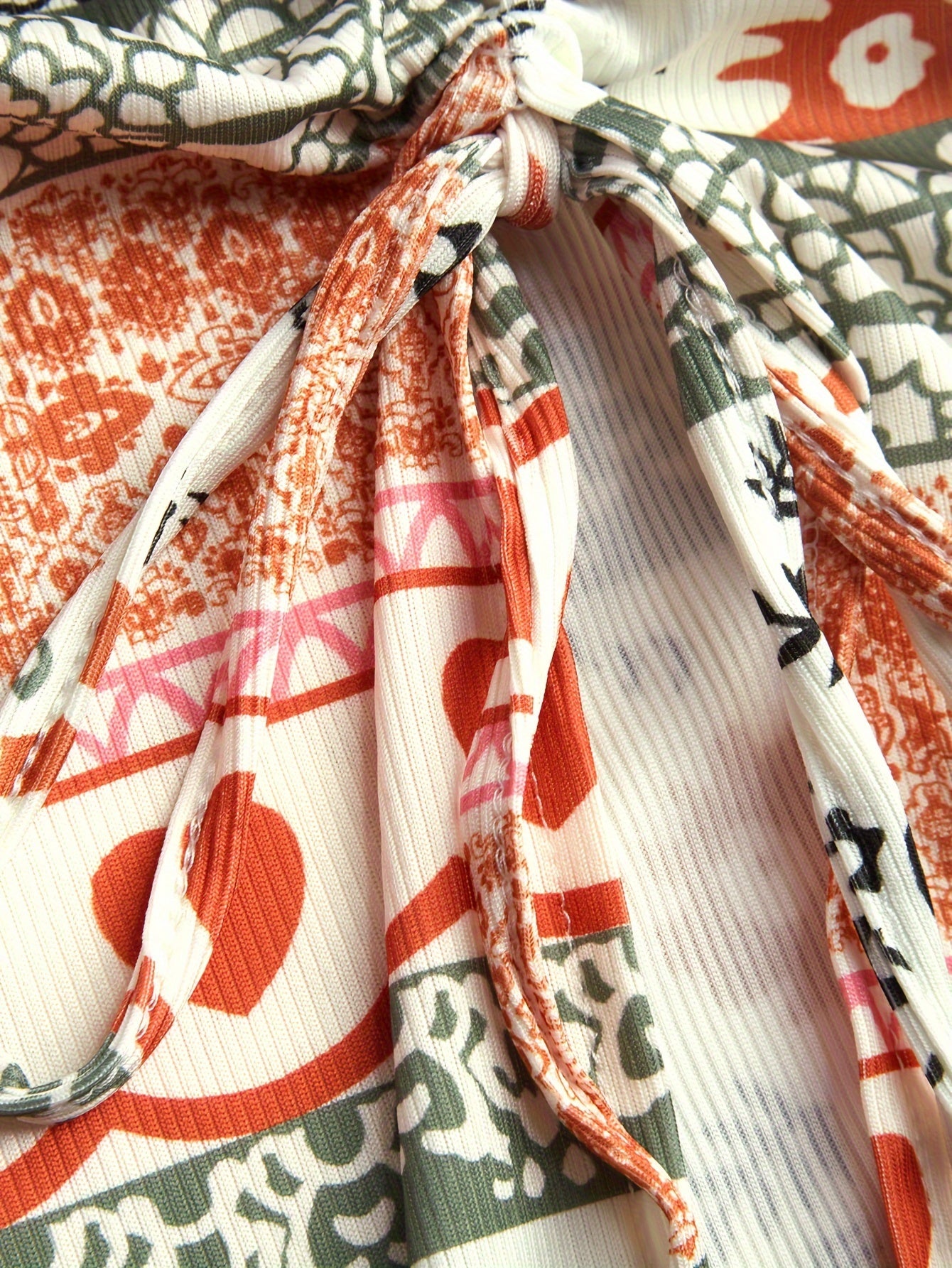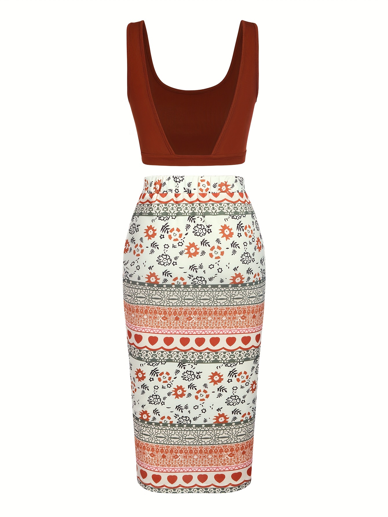 Chic Sleeveless Backless Crop Top & Floral Print Drawstring Split Dress Outfit - Effortlessly Stylish Casual Wear for Women
