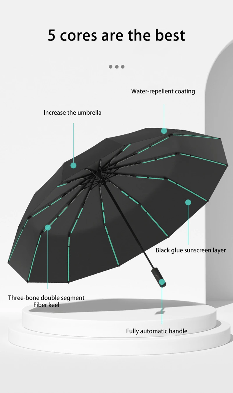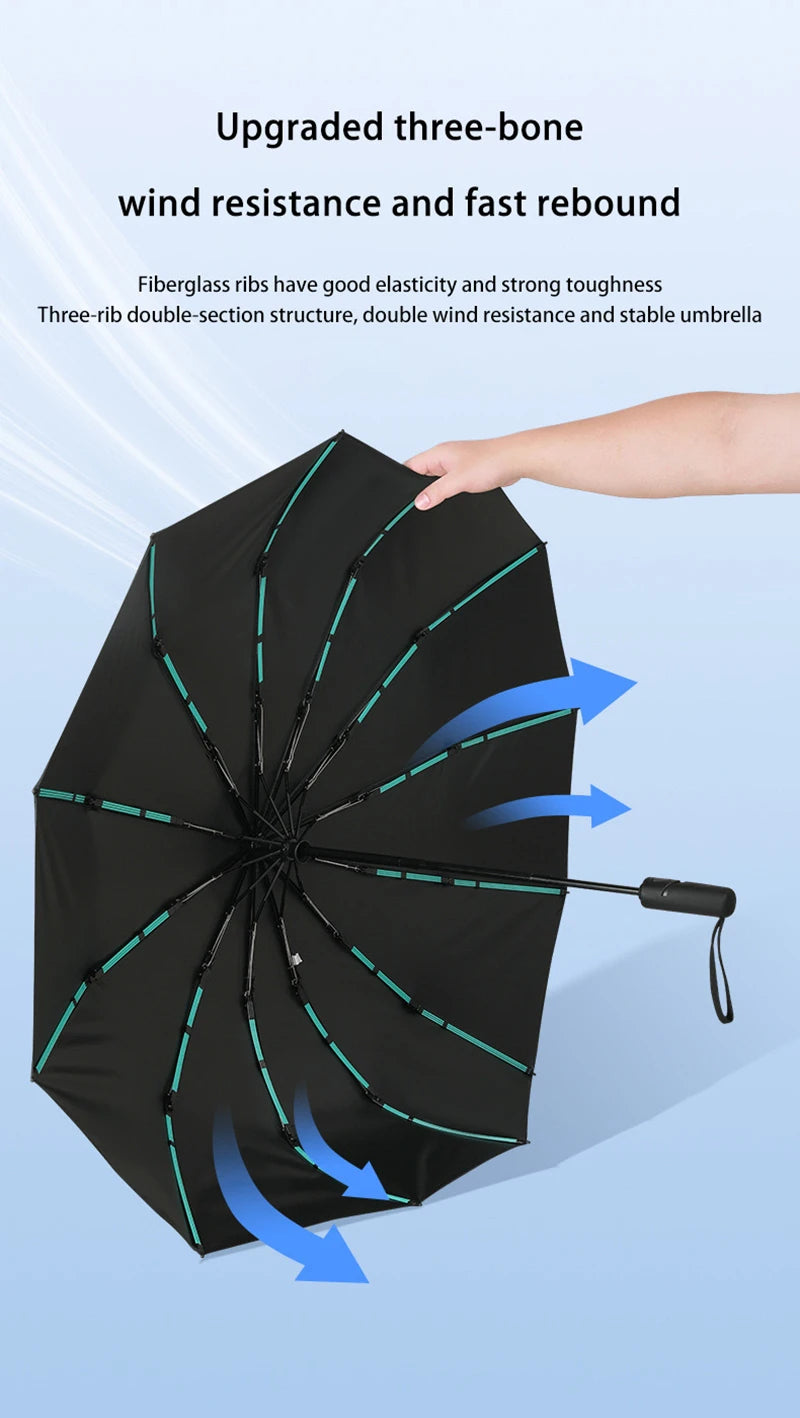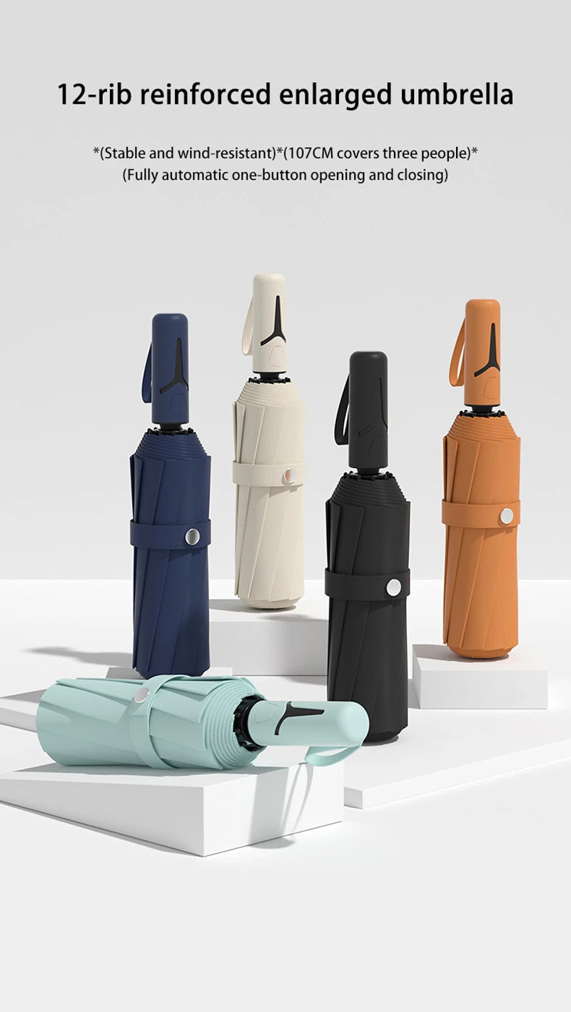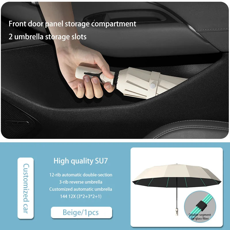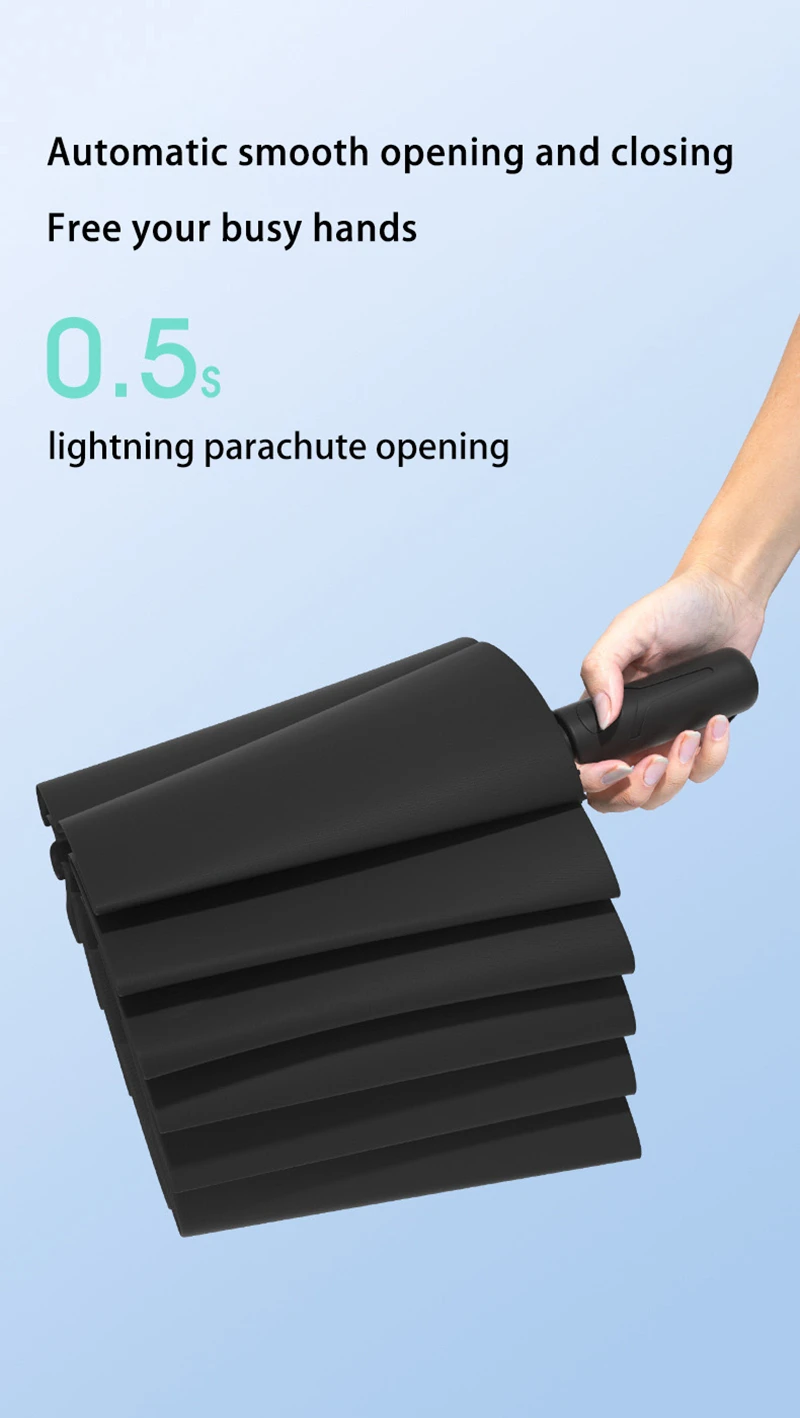 Extra Large Auto Open Close Umbrella Windproof Reverse Fold Sun Rain UV Protection Black Layer Sunshade for Outdoor Travel Use