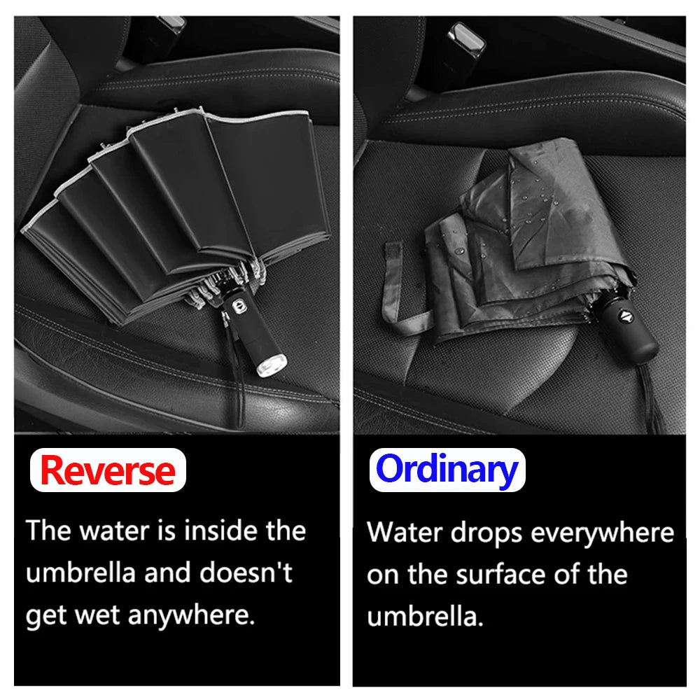 1. The reverse umbrella is different from the traditional umbrella. When this umbrella is closed, the wet part will be inside the umbrella, preventing water from dripping and keeping the floor and car dry. It can be placed anywhere.