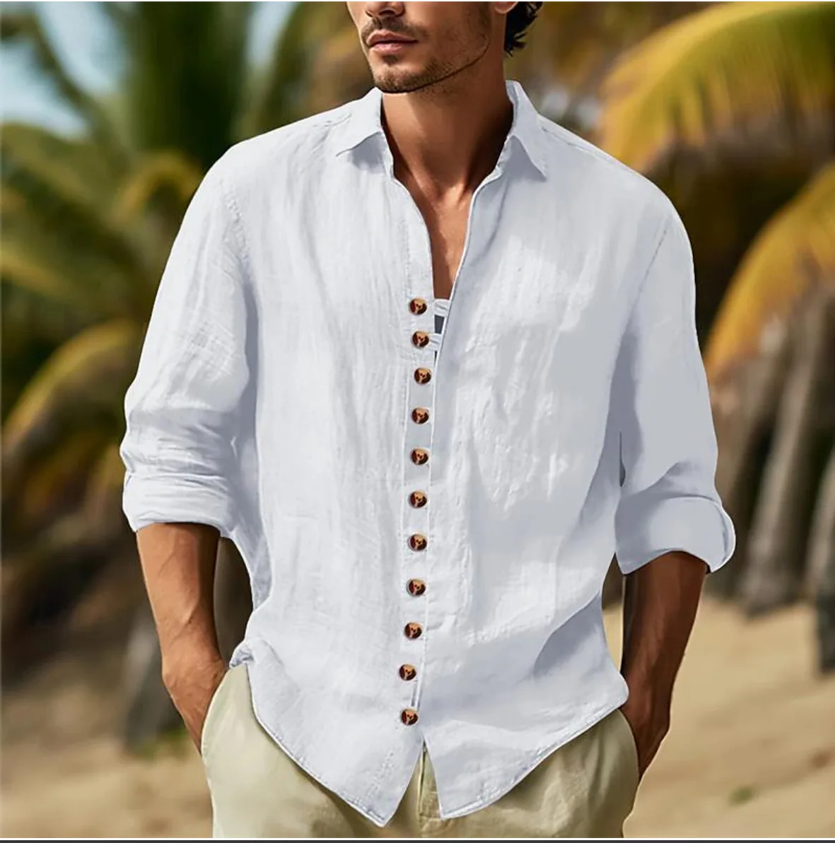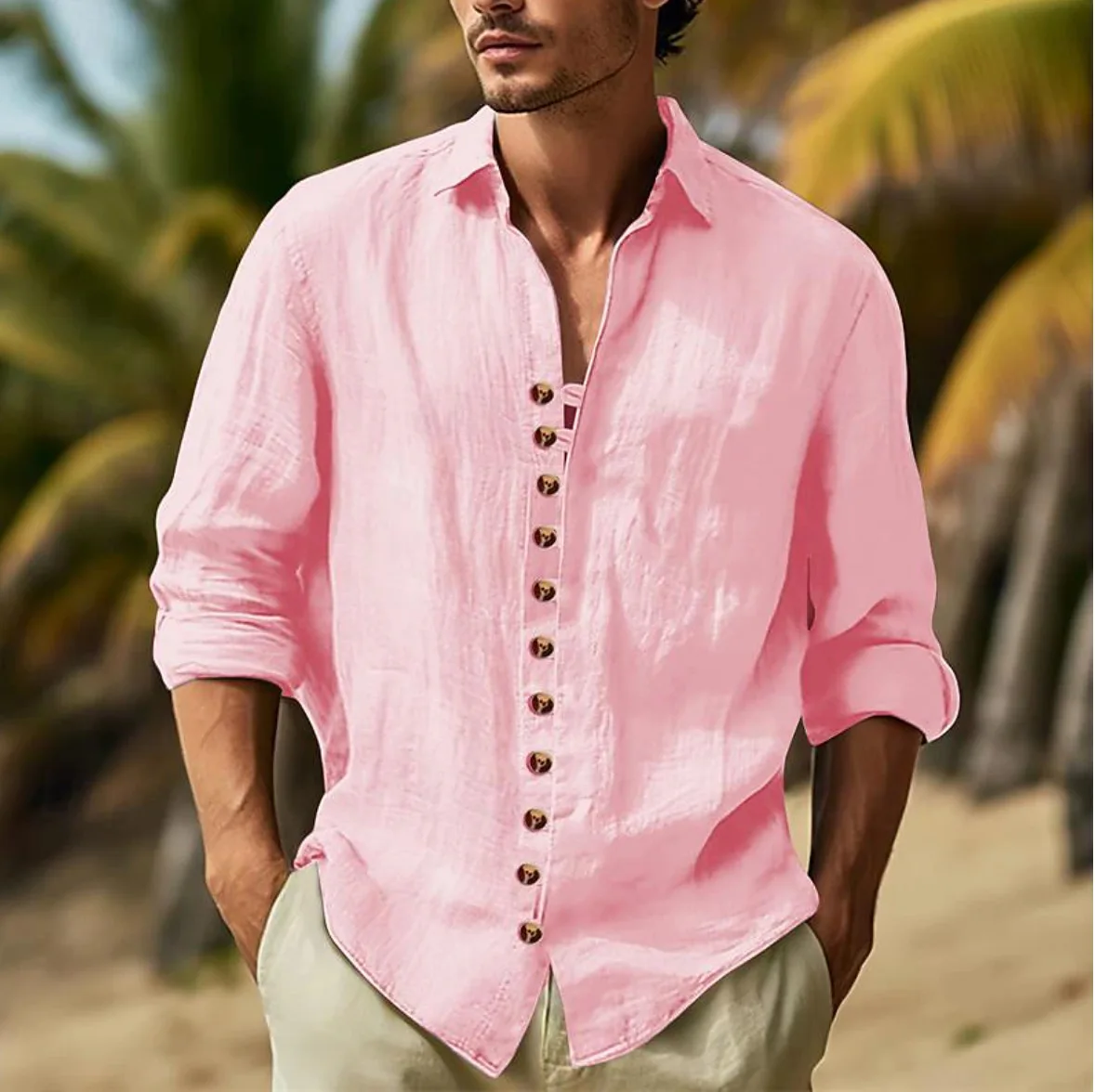 Men's Button-down Casual Shirt Cotton Long-sleeve Shirt with Collar for Spring and Autumn Festivals