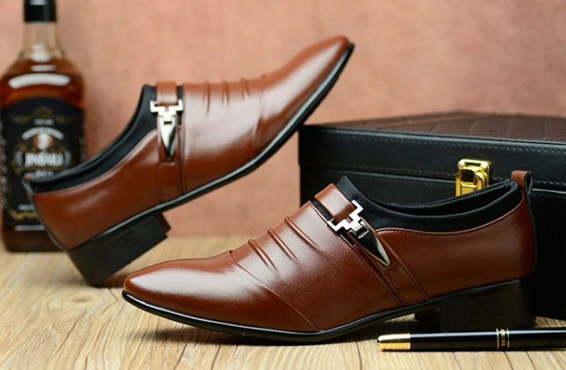 Classic Mens Dress Shoes Slip on PU Leather Shoes for Men Plus Size Point Toe Business Casual Male Formal Shoes for Wedding 2025