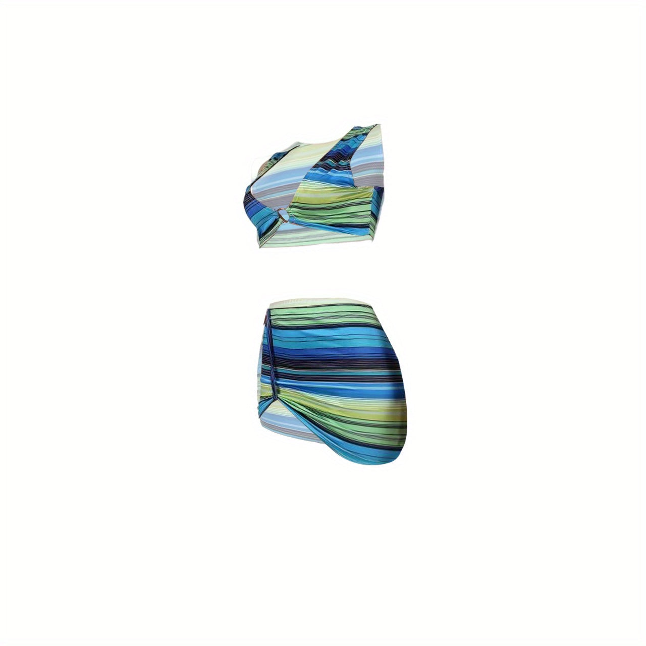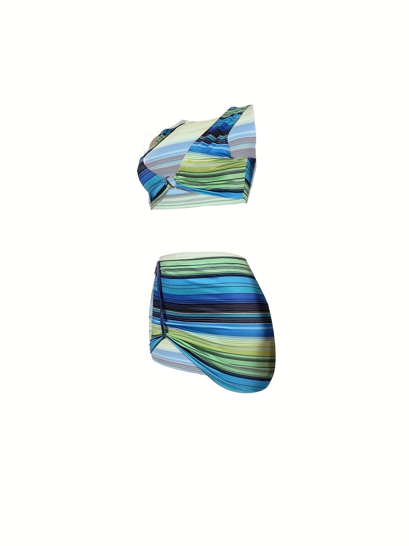 Stripe Seduction: Sleek Spring/Summer Women's Crop Top & Skirt Set with Ring Detail - Stretchy & Easy-Care