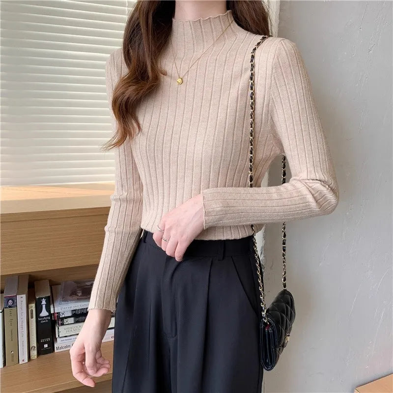 Woman Sweaters 2025 Autumn Winter Knitted Ribbed Turtleneck Sweater Women Clothes Long Sleeve Slim Basic Pullover Solid Tops