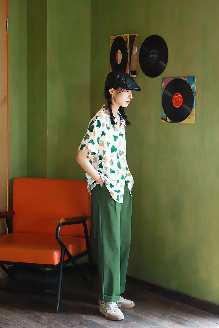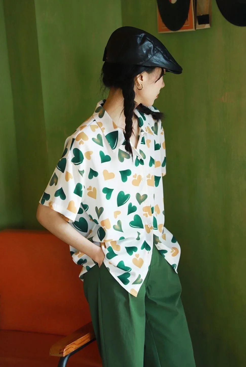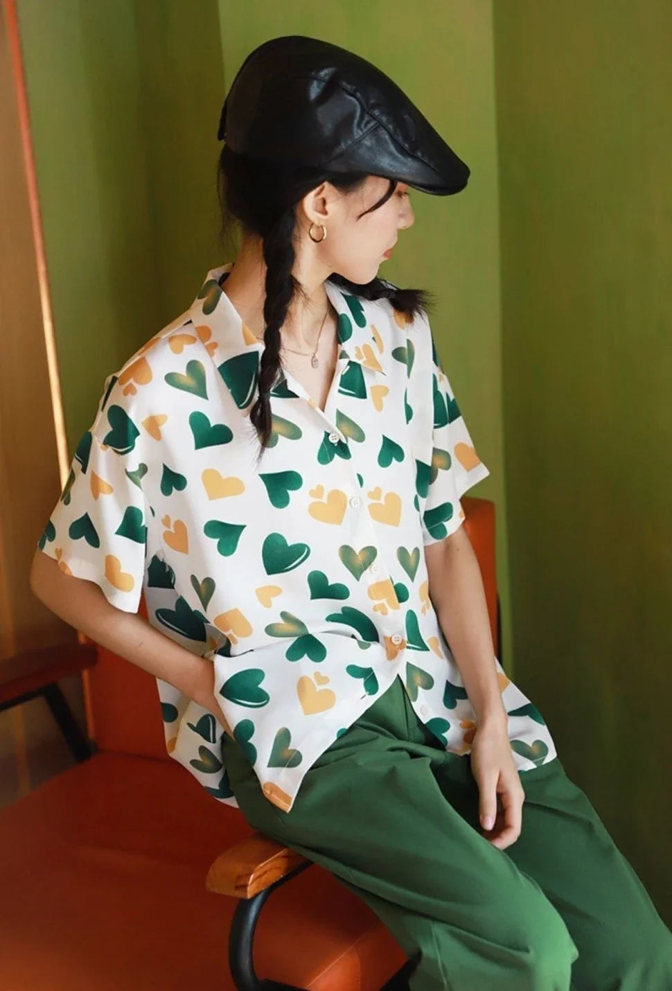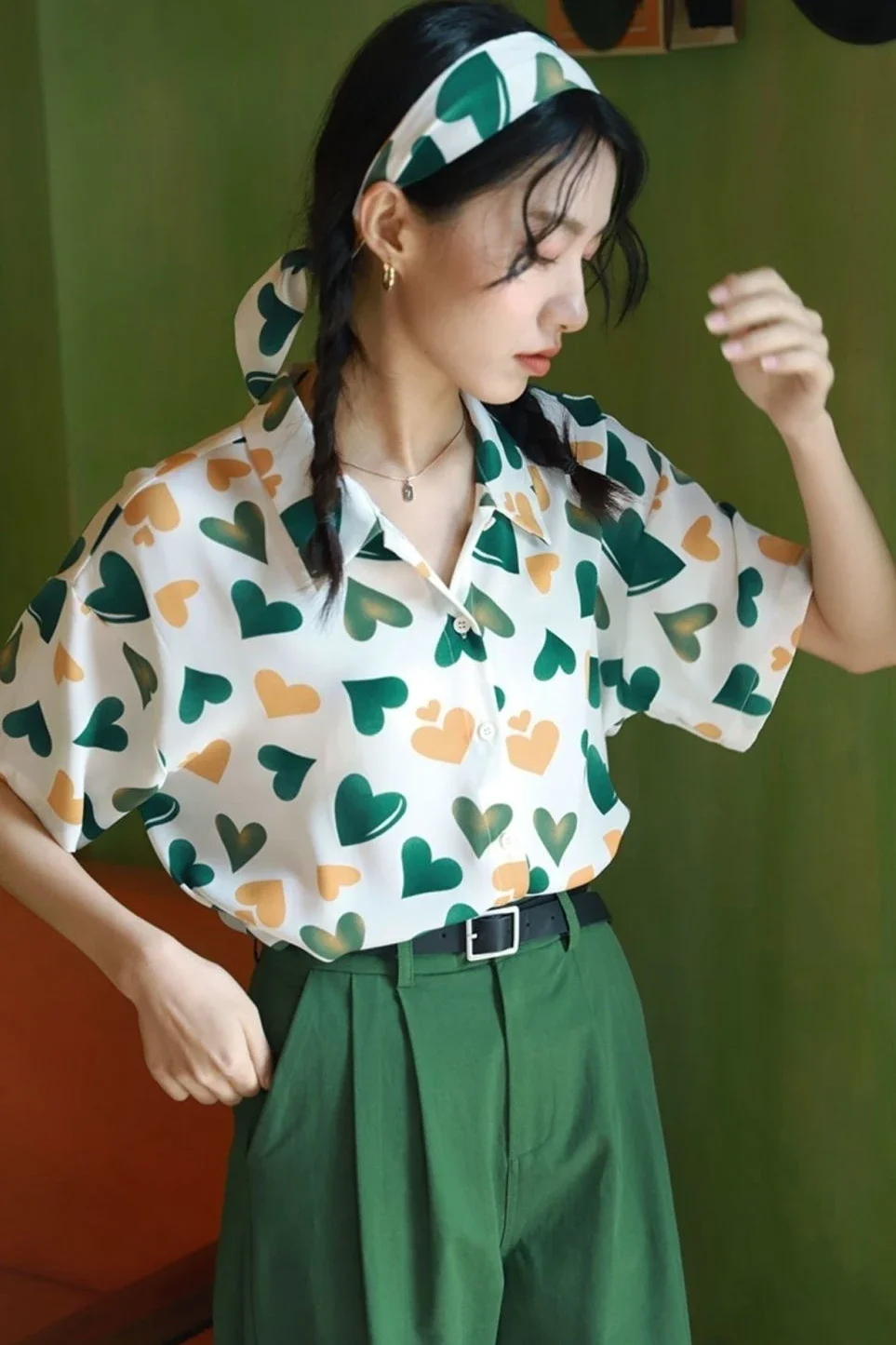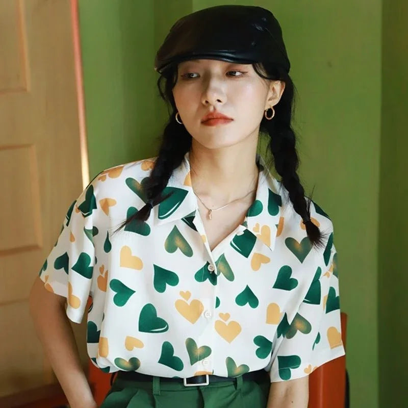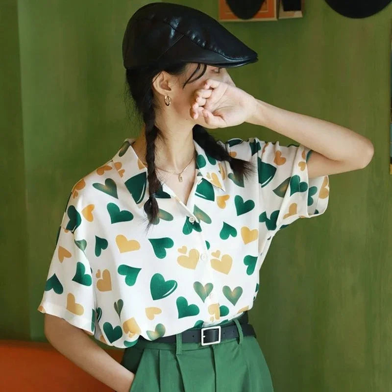 Woman Top Love Shirts & Blouses for Women Green New Collection 2025 Elegant and Youthful S Y2k Fashion Clothing Sales Cool Cute