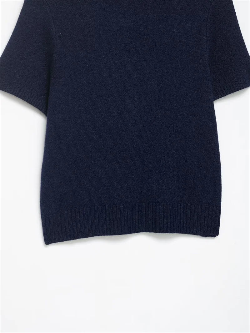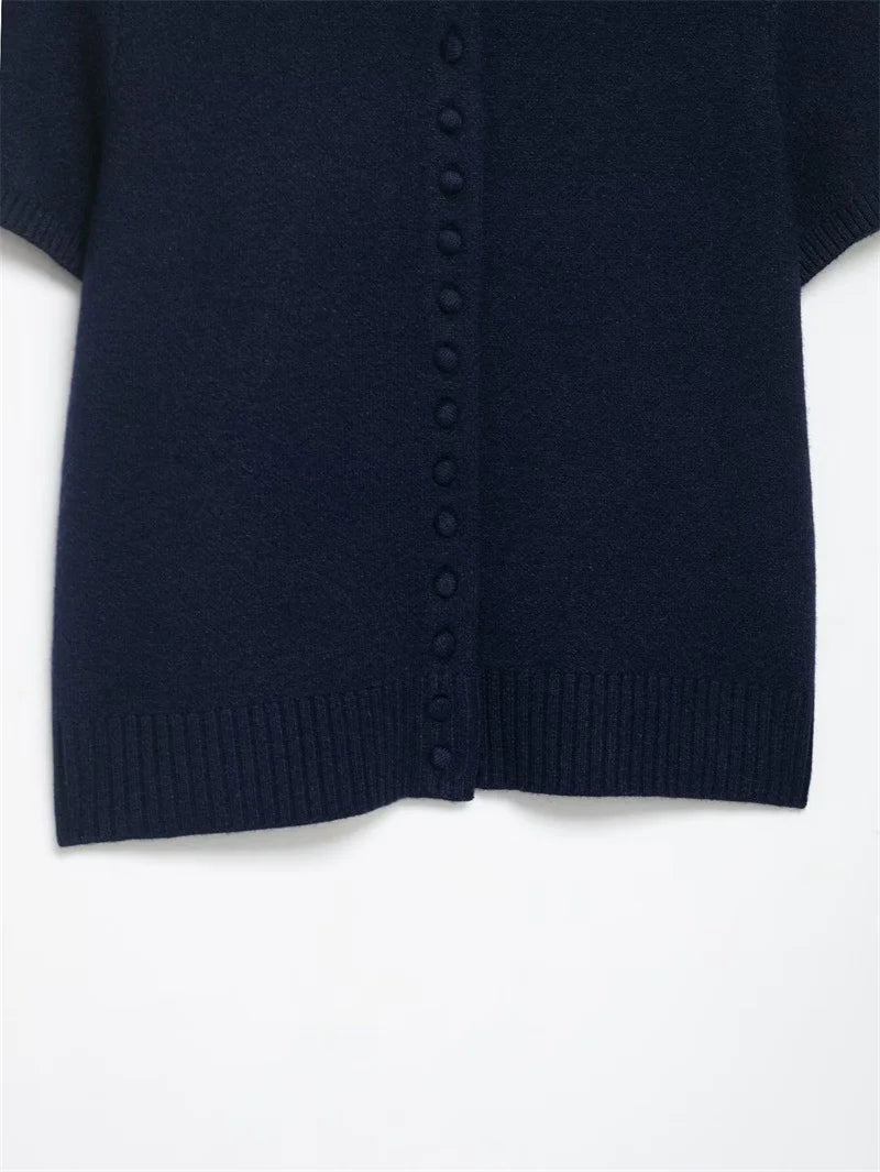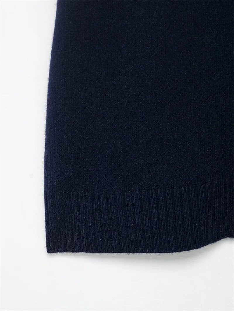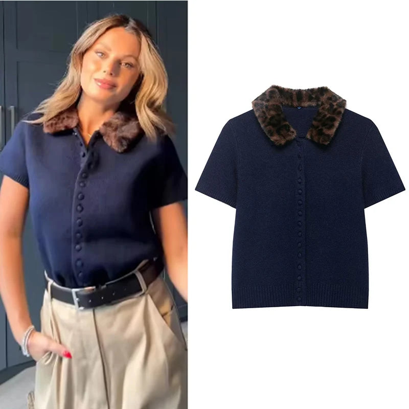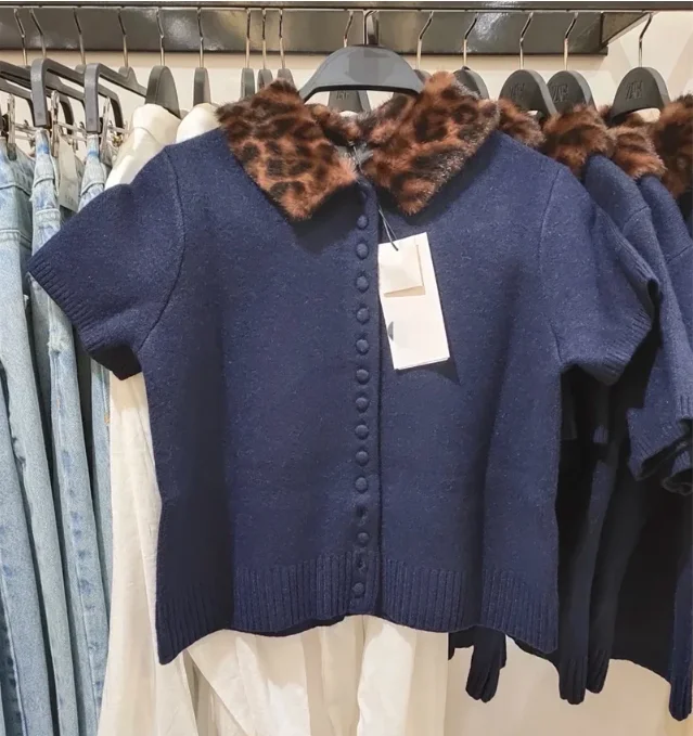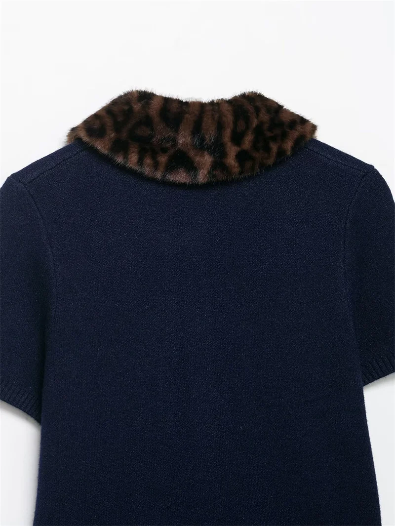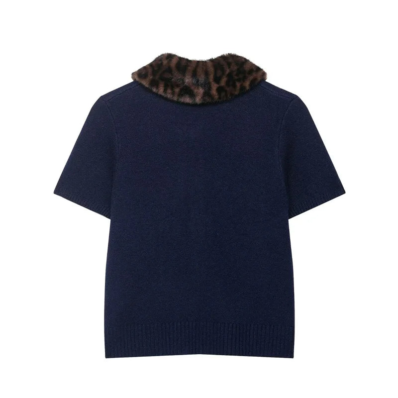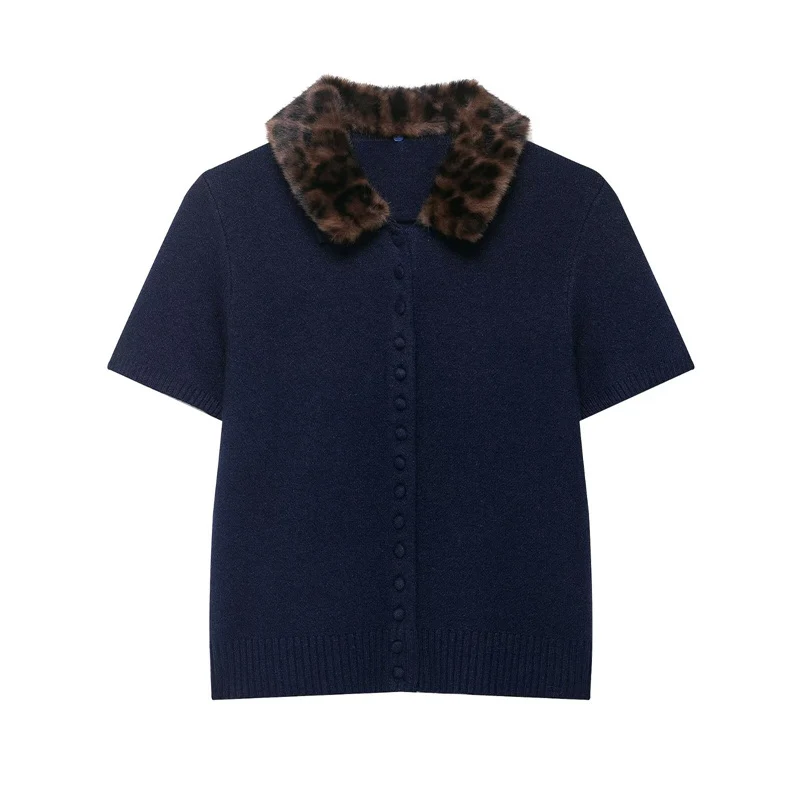 Women's Jacket 2025 New Autumn Fashion Darkblue Detachable Animal Print Neckline Knitted Jacket for Women Casual Chic Ladies Top