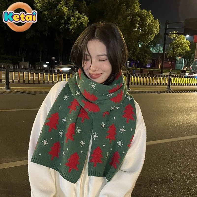Women's Knitted Scarf for Fall and Winter, Red, Warm and Versatile, Perfect for Students, Couples and Christmas Gifts, Wool Wrap