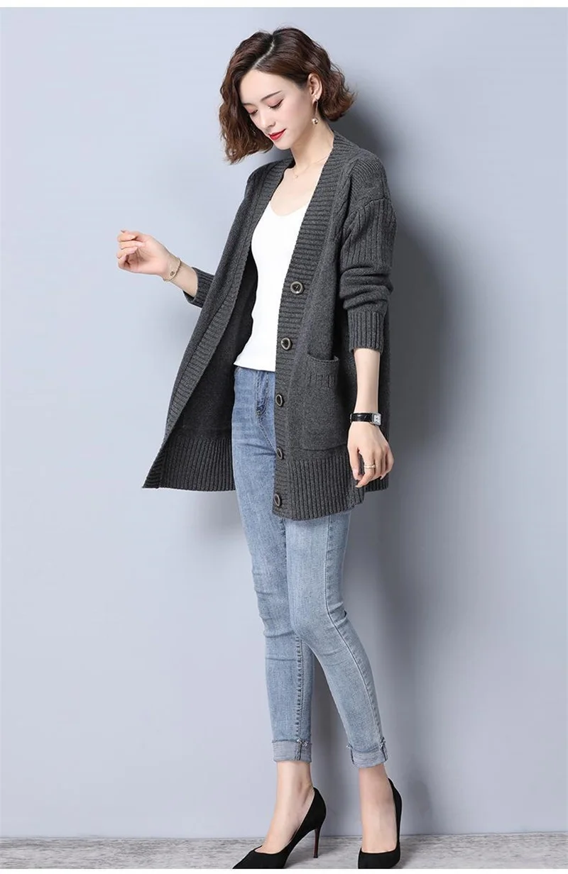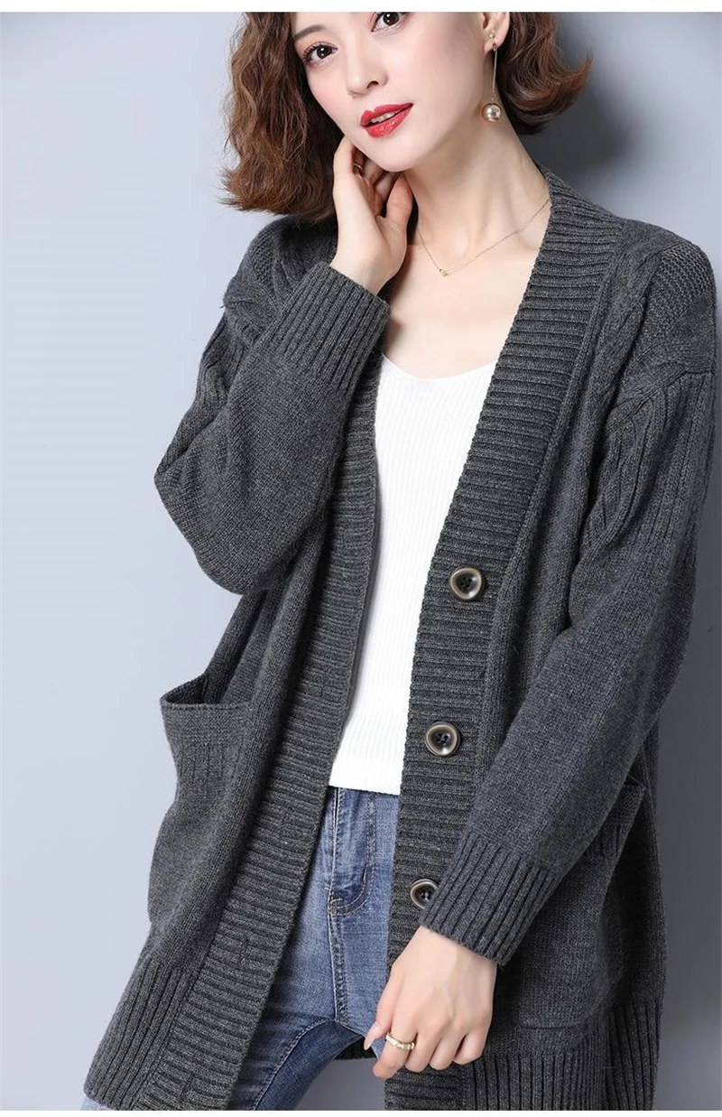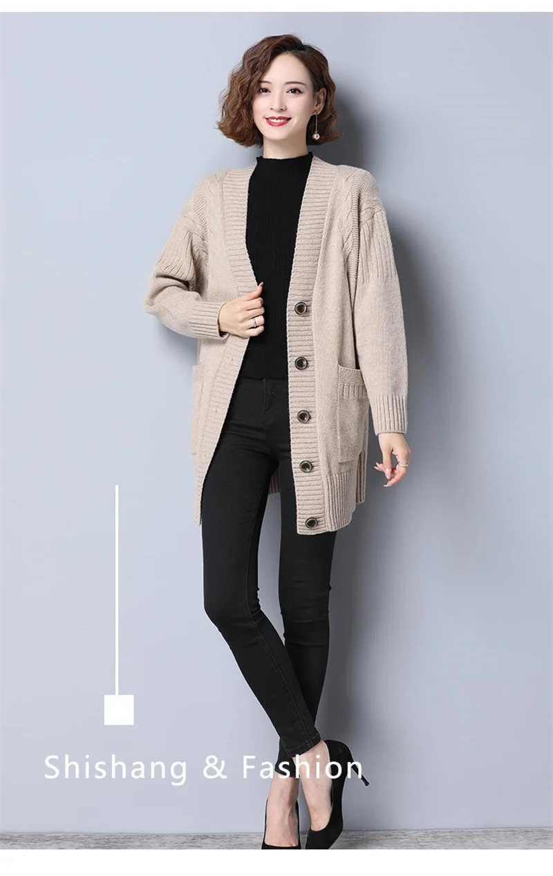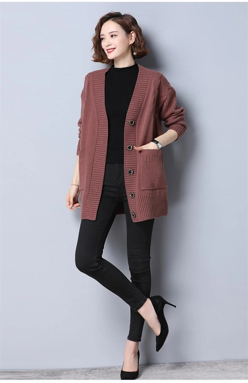 Women's Sweater 2025 New Autumn Winter Knitted Cardigan Female V-neck Blouses Loose Solid Single Breasted Knitt Coat Ladies Tops