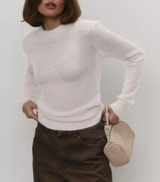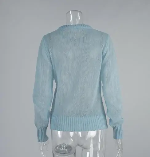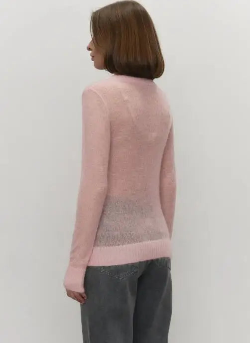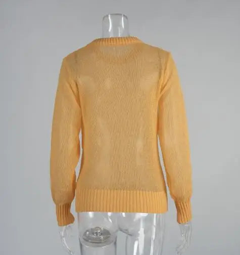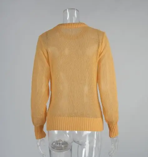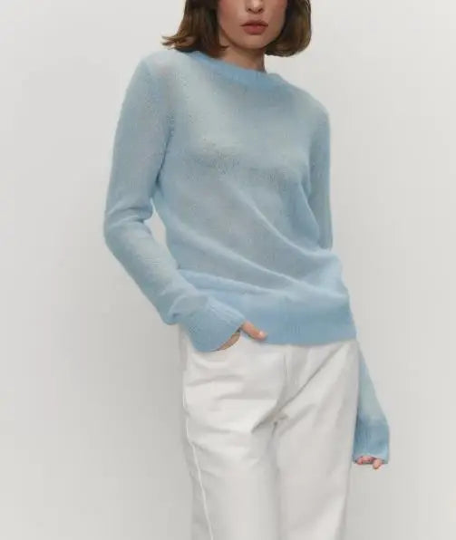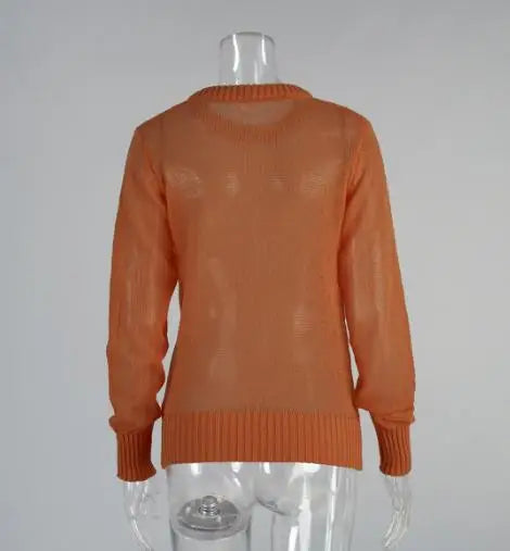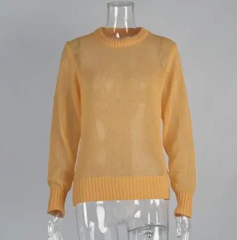 Women's Sweater 2025 Spring Autumn New Comfortable Round Neck Long Sleeve Casual Knitted Basic Semi Transparent Pullover Sweater