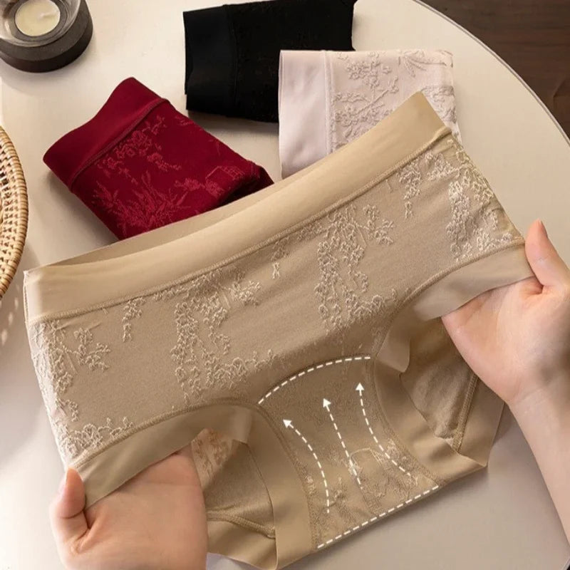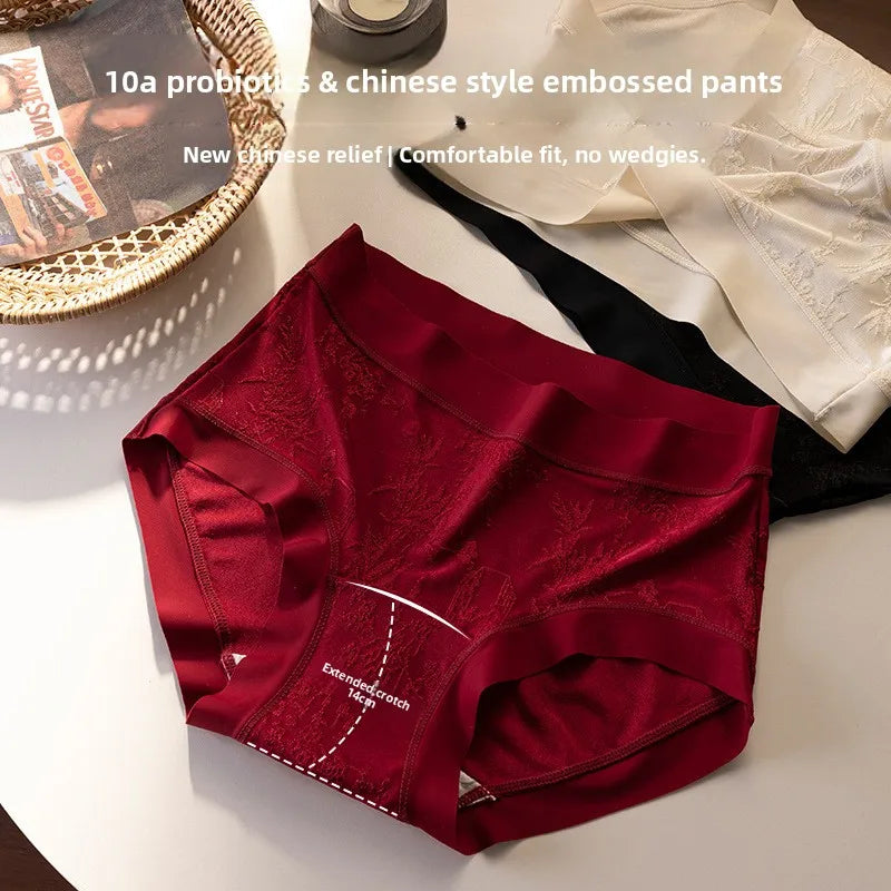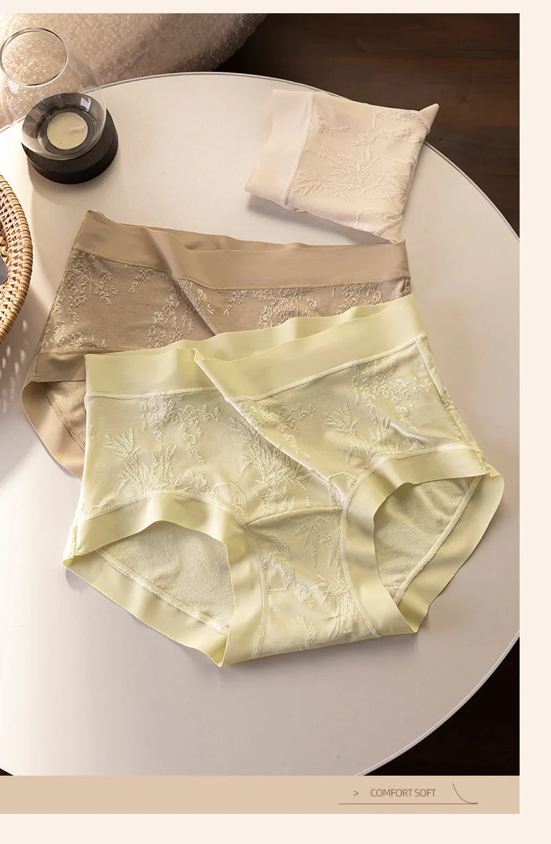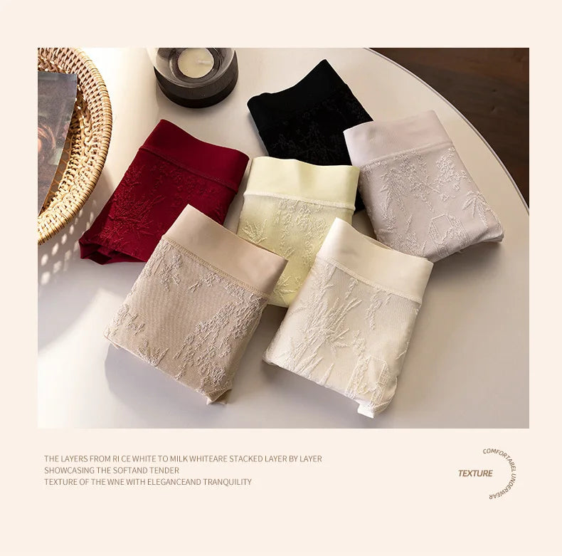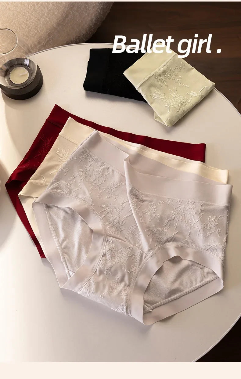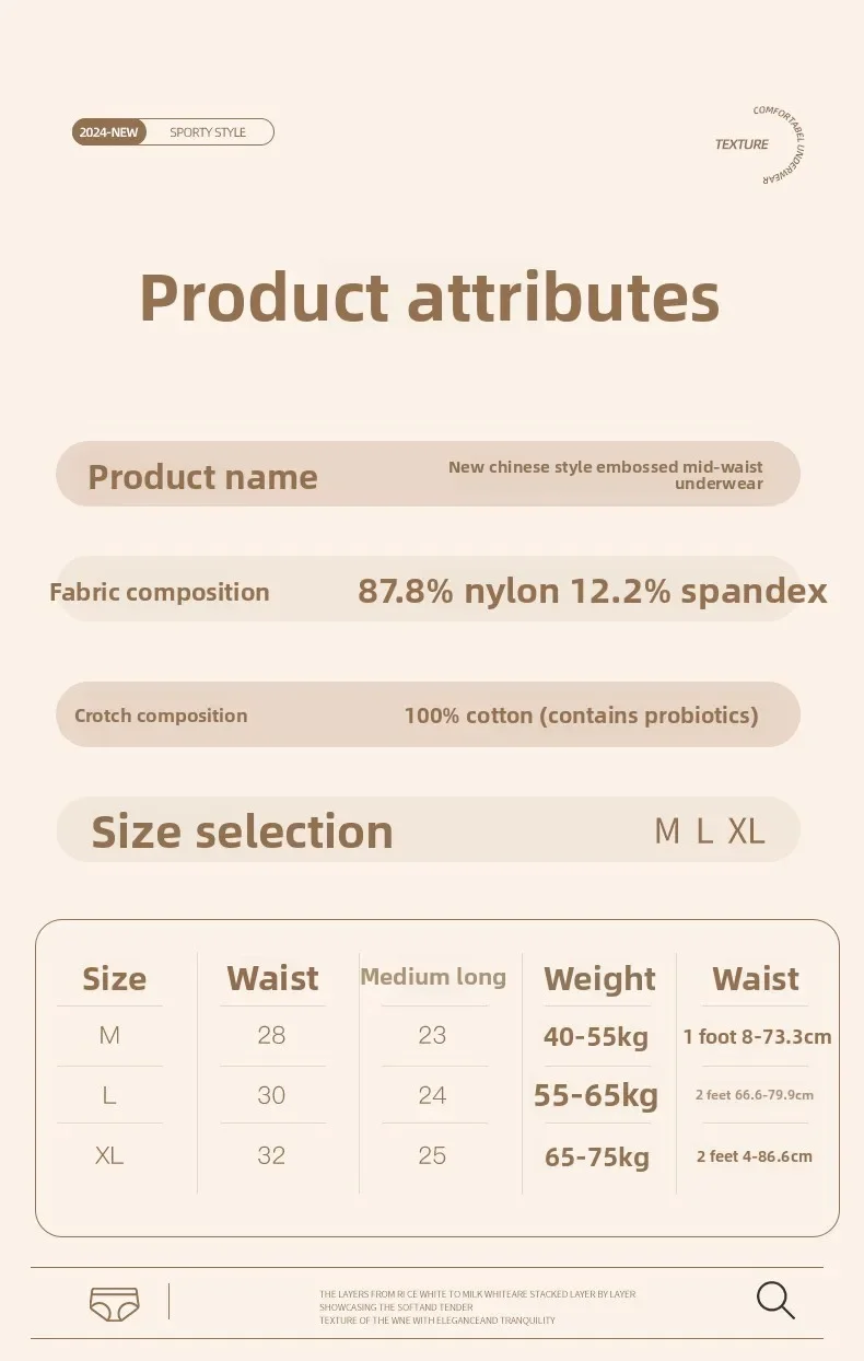Women's underwear: Comfortable nylon jacquard mid-waist, extended inner rib, hip-hugging, large size triangle