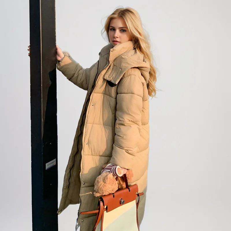 Women's Winter Jacket 2025 Female Hooded Warm Demi-season Jacket Lady's Long Over-the-knee Commuting Down Jacket For Female